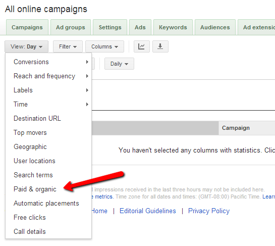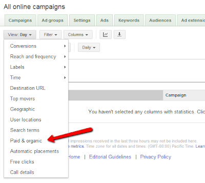 3. Enter the ‘view’ filter and click on ‘paid and organic’.